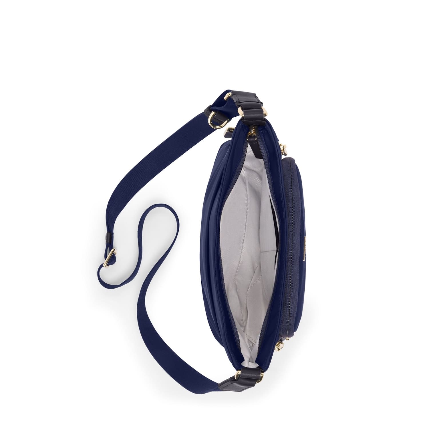 • Adjustable crossbody strap with D-ring